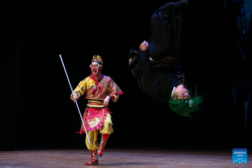 On Saturday, the Zhejiang troupe performed six classic pieces, including "Lyu Bu Tries the Horse," "The Goddess of Heaven Scatters Flowers," and "Three Triumphs Over the Skeletal Demon."