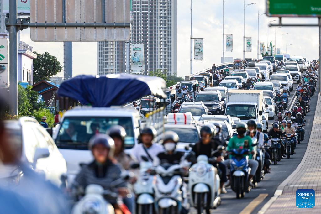 (250921) -- PHNOM PENH, Sept. 21, 2025 (Xinhua) -- Cambodians depart for their hometowns across the country ahead of the Pchum Ben festival from Phnom Penh, capital of Cambodia, on Sept. 19, 2025.