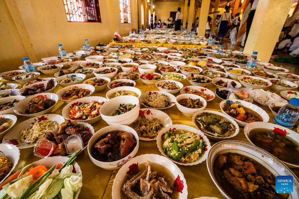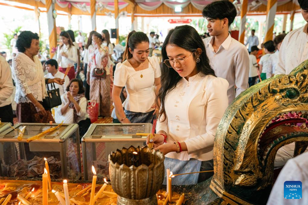 During the celebrations, the Cambodian Buddhists go to pagodas and make offerings to monks in order to dedicate to their deceased relatives and loved ones. (Photo by Nitola/Xinhua)