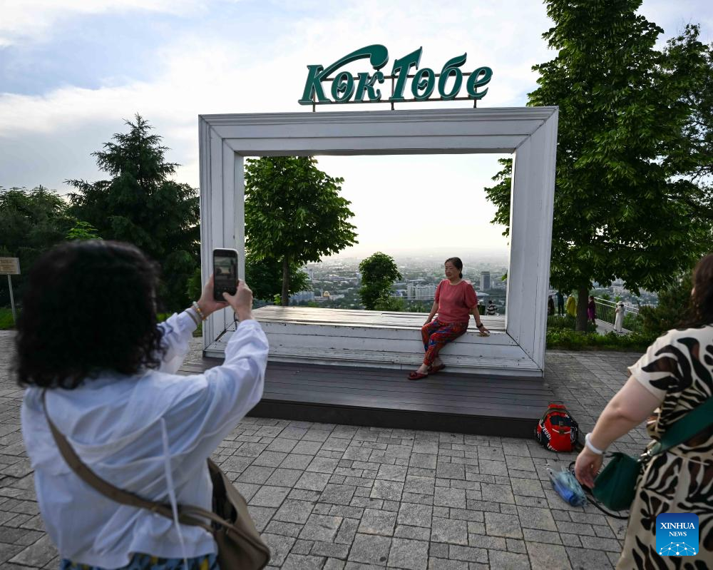 Chinese tourists visit the Kok Tobe Mountain in Almaty, Kazakhstan on May 13, 2025. (Xinhua/Li Renzi)
