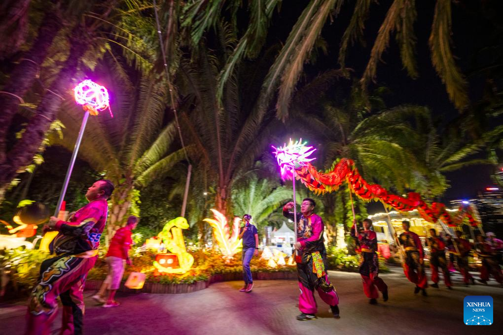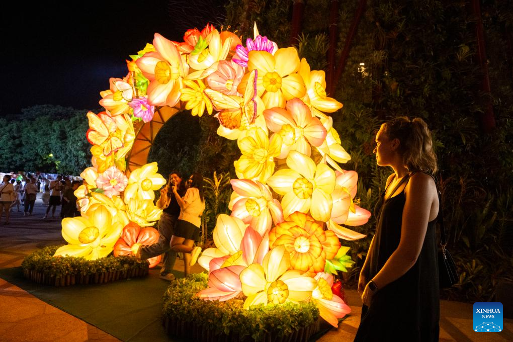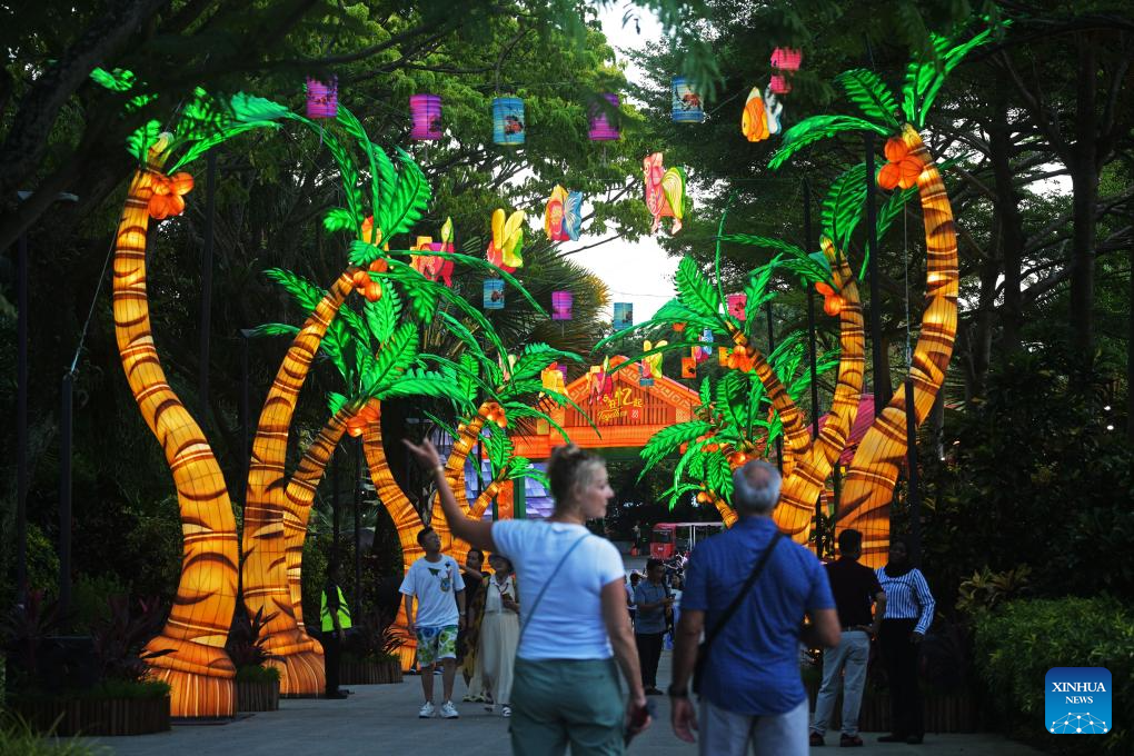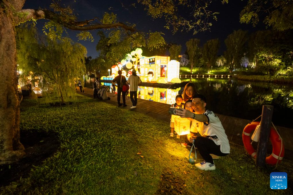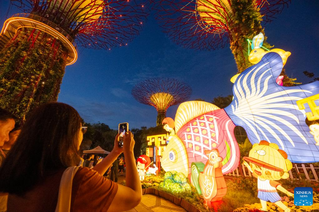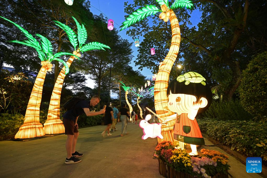 Tourists visit a Mid-Autumn Festival lantern show held at Singapore's Gardens by the Bay on Sept. 22, 2025. (Photo by Then Chih Wey/Xinhua)