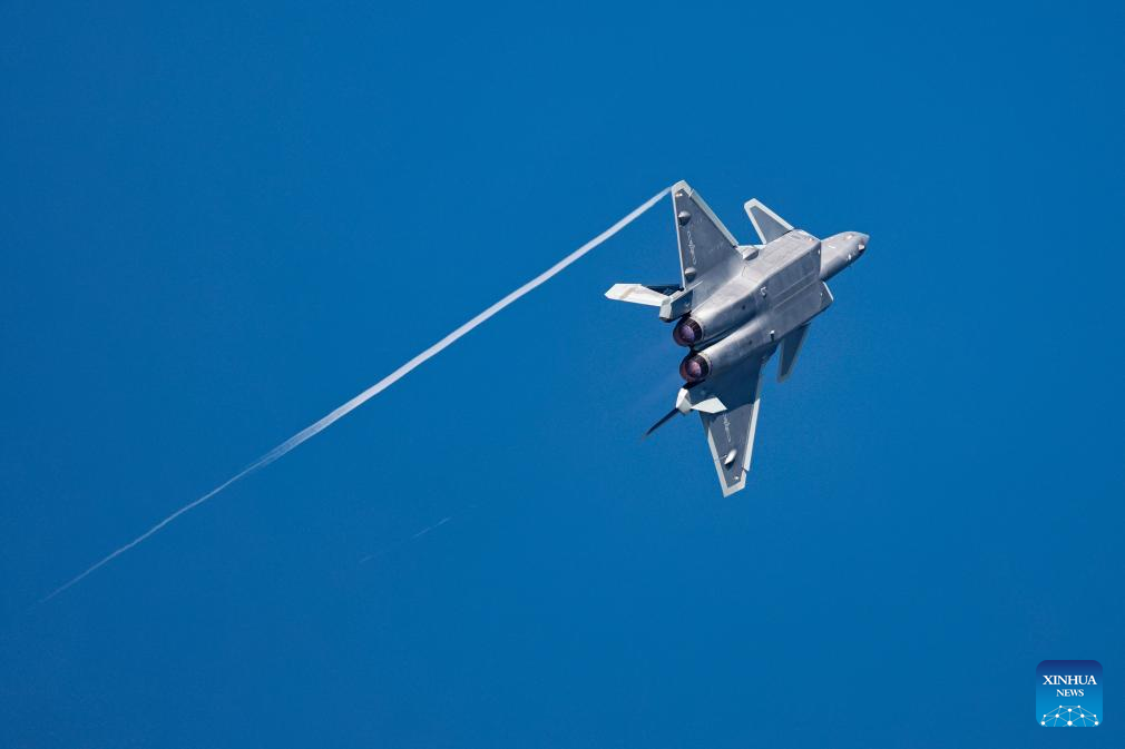 J-20 fighter jets are pictured during the 2025 aviation open-day activities of the Chinese People's Liberation Army Air Force and Changchun Air Show in Changchun, northeast China's Jilin Province, Sept. 23, 2025. The events concluded here on Tuesday. (Photo by Tan Sicheng/Xinhua)