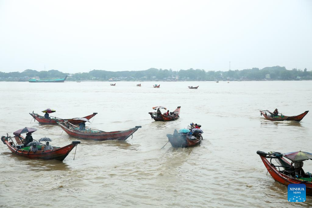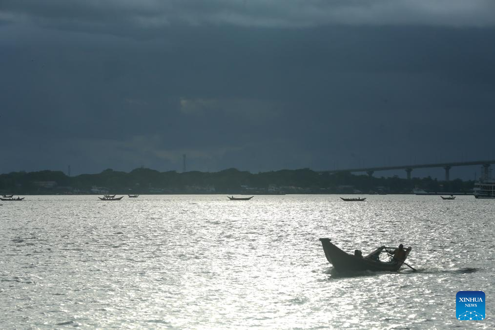 Boats are seen on the Yangon River in Yangon, Myanmar, Sept. 28, 2025. (Xinhua/Myo Kyaw Soe)