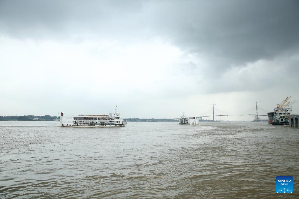 Ferry ships sail across the Yangon River in Yangon, Myanmar, Sept. 28, 2025. (Xinhua/Myo Kyaw Soe)