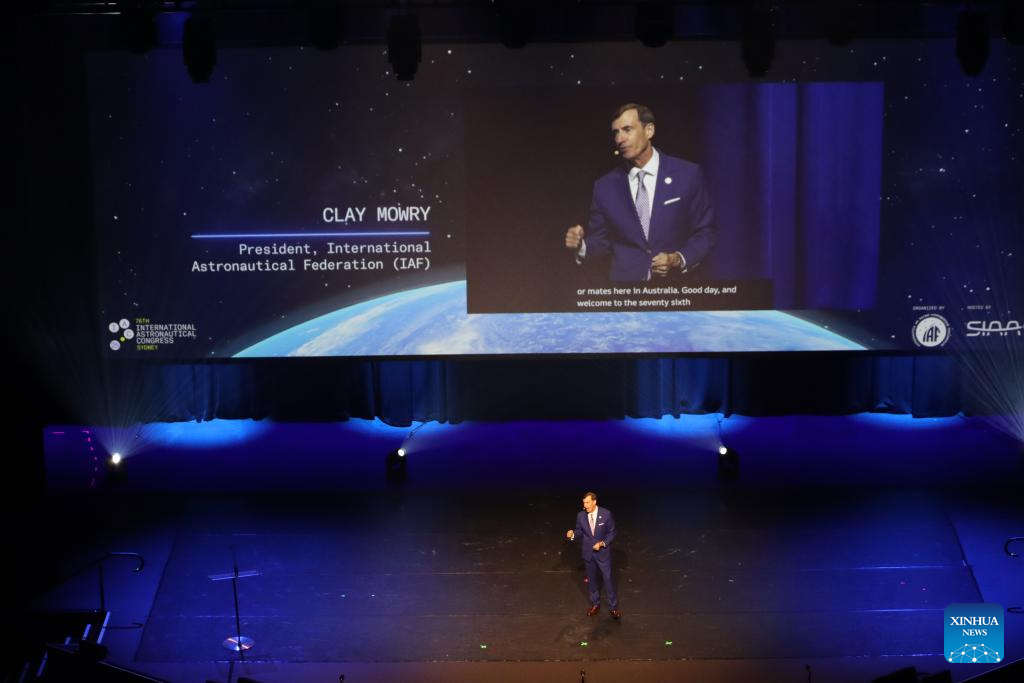 Clay Mowry, President of the International Astronautical Federation (IAF), addresses the opening ceremony of the 76th International Astronautical Congress (IAC 2025) in Sydney, Australia, Sept. 29, 2025. The 76th International Astronautical Congress (IAC 2025) opened in Sydney on Monday, gathering thousands of space professionals, decision-makers, academics, industry leaders, astronauts, and students from around the world. (Xinhua/Li Xiaoyu)