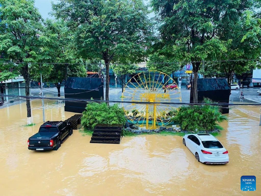 Vehicles are submerged in flood water in Cao Bang Province, Vietnam, Sept. 30, 2025. The death toll from Typhoon Bualoi and subsequent floods and landslides in Vietnam has risen to 27, with 21 people still missing and 112 others injured across 17 northern and central provinces, Vietnam News Agency reported Tuesday. (VNA via Xinhua)