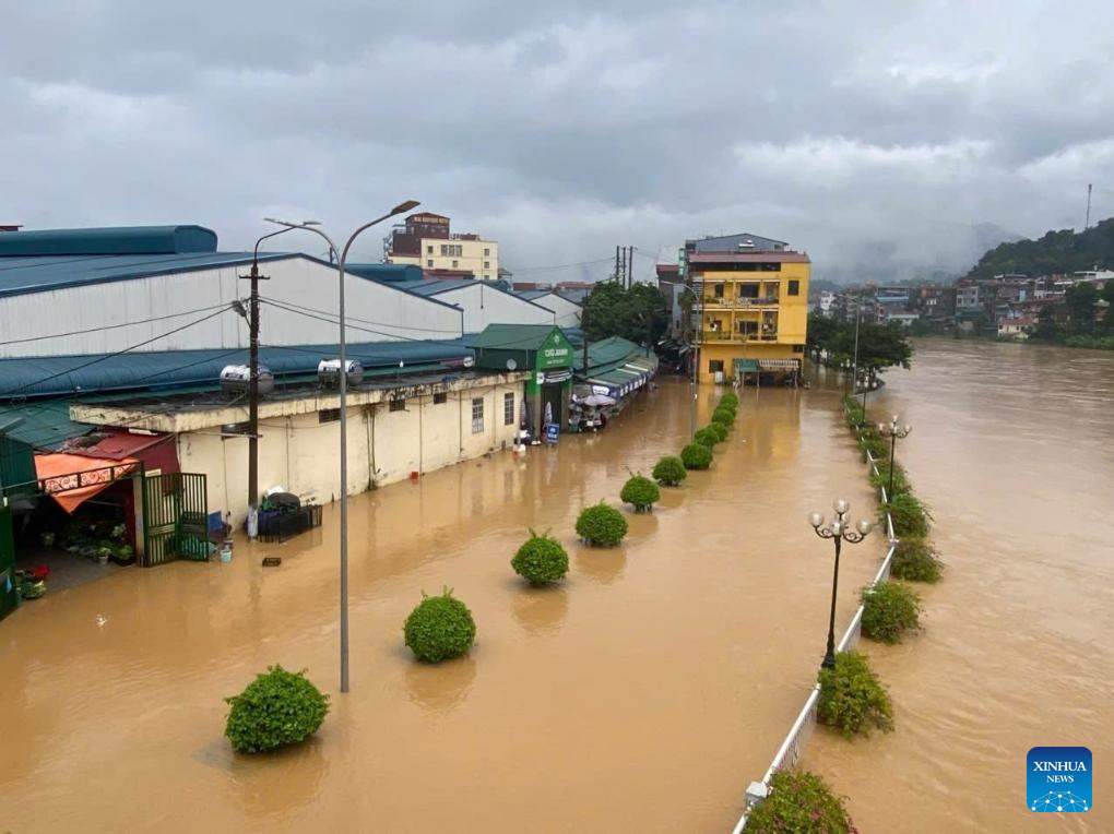 A pedestrian street is submerged in flood water in Cao Bang Province, Vietnam, Sept. 30, 2025. The death toll from Typhoon Bualoi and subsequent floods and landslides in Vietnam has risen to 27, with 21 people still missing and 112 others injured across 17 northern and central provinces, Vietnam News Agency reported Tuesday. (VNA via Xinhua)