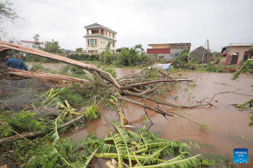Trees are toppled in Ninh Binh Province, Vietnam, Sept. 29, 2025. The death toll from Typhoon Bualoi and subsequent floods and landslides in Vietnam has risen to 27, with 21 people still missing and 112 others injured across 17 northern and central provinces, Vietnam News Agency reported Tuesday. (VNA via Xinhua)