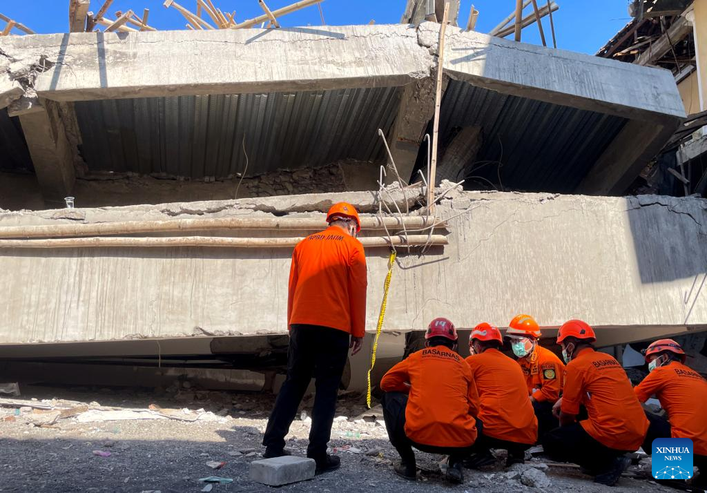 JAKARTA, Oct. 1 (Xinhua) -- Indonesia's disaster management agency said Wednesday that at least 91 were trapped after a school building collapsed on Monday in the Sidoarjo district of East Java province.