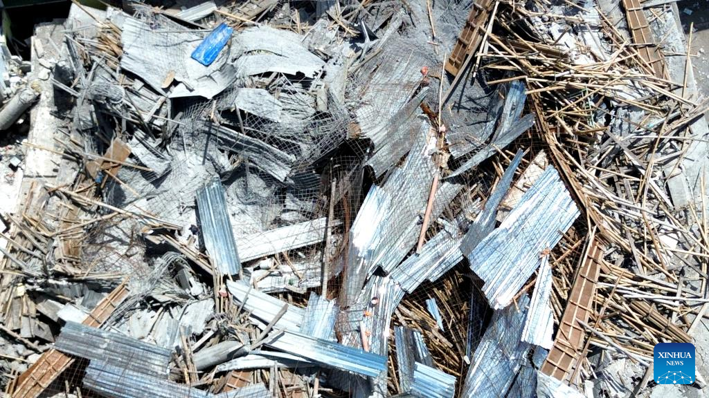 An aerial drone photo shows the site of a collapsed school building at Al Khoziny Islamic Boarding School in Sidoarjo district, East Java, Indonesia, Oct. 1, 2025. Indonesia's disaster management agency said Wednesday that at least 91 were trapped after a school building collapsed on Monday in the Sidoarjo district of East Java province. (Photo by Sahlan Kurniawan/Xinhua)