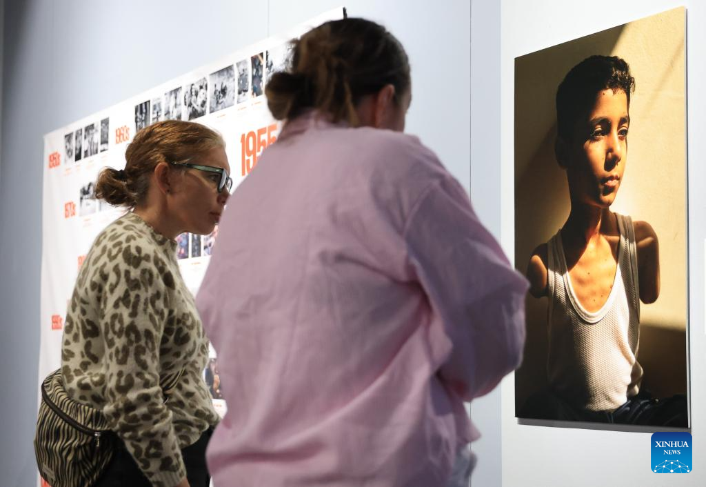 People watch the World Press Photo Exhibition 2025 - Wellington at Takina-Wellington Convention and Exhibition Centre in Wellington, New Zealand, Oct. 5, 2025. The exhibition came to an end on Sunday. (Photo by Meng Tao/Xinhua)
