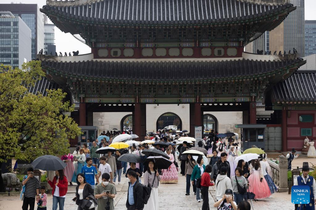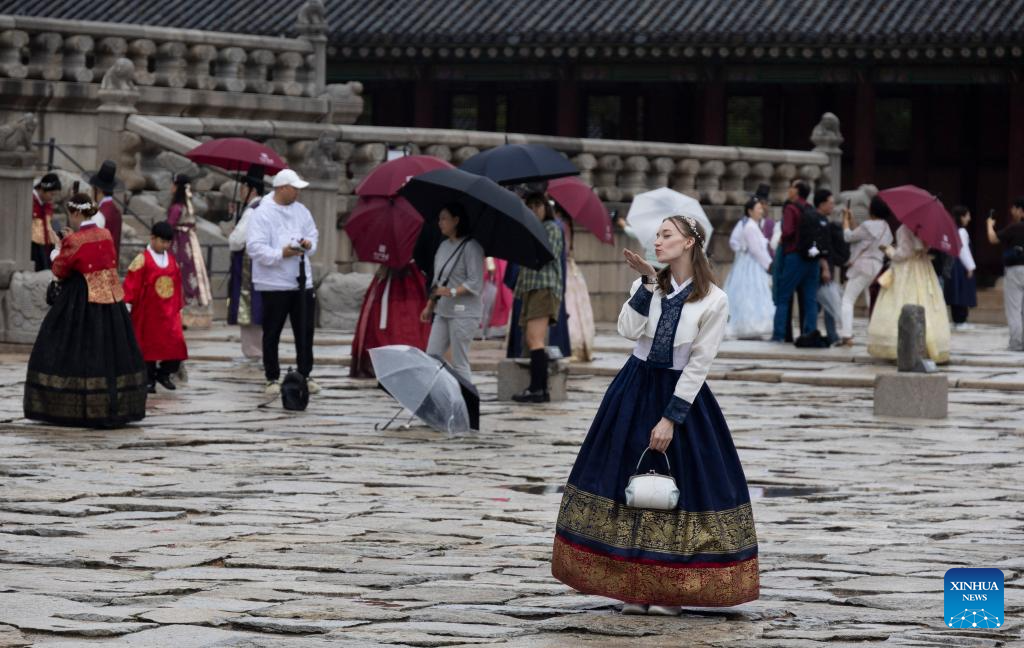 People visit the Gyeongbokgung Palace in Seoul, South Korea, Oct. 5, 2025. Ancient palaces in Seoul including the Gyeongbokgung Palace are open to the public free of charge from Oct. 3 to 9. (Photo by Jun Hyosang/Xinhua)