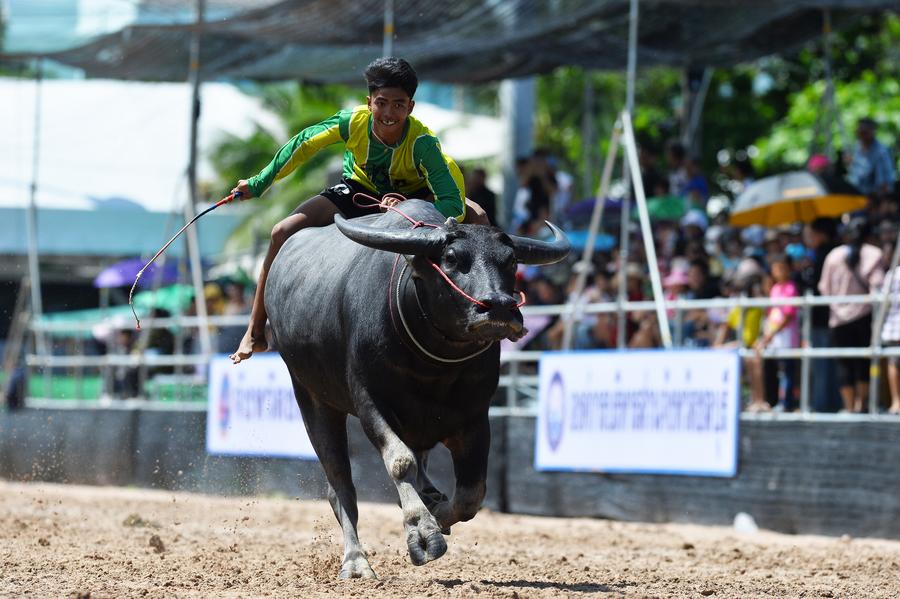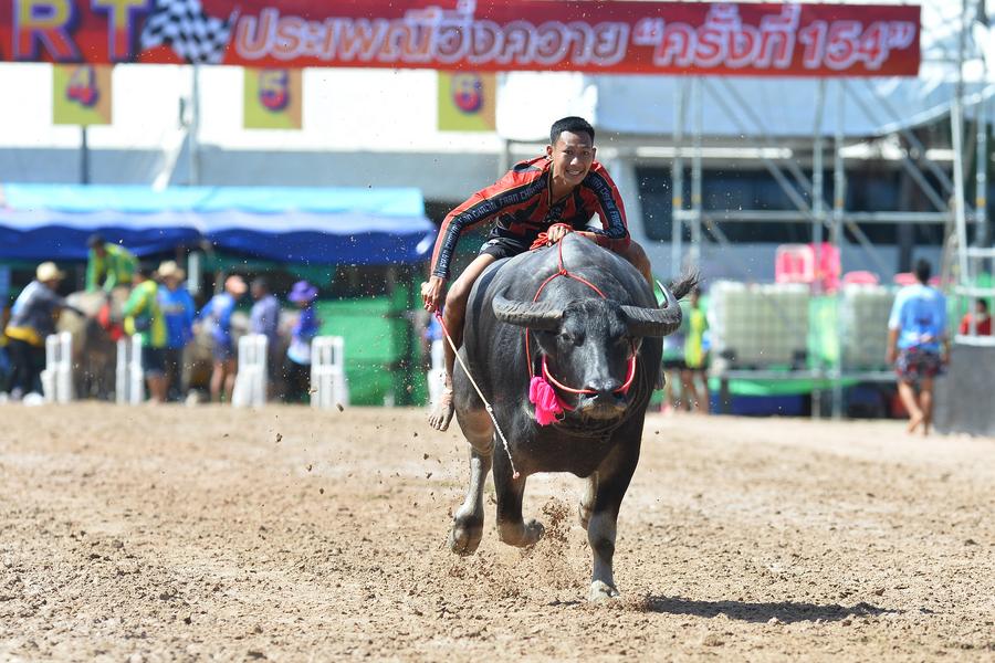A racer competes during a buffalo racing in Chonburi, Thailand, Oct. 6, 2025. (Xinhua/Rachen Sageamsak)A racer competes during a buffalo racing in Chonburi, Thailand, Oct. 6, 2025. (Xinhua/Rachen Sageamsak)A racer competes during a buffalo racing in Chonburi, Thailand, Oct. 6, 2025. (Xinhua/Rachen Sageamsak)■