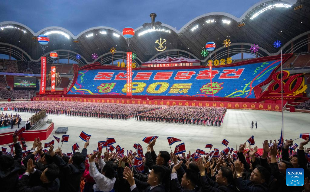PYONGYANG, Oct. 10 (Xinhua) -- The Democratic People's Republic of Korea (DPRK) on Thursday held a grand commemorative meeting at the May Day Stadium to celebrate the 80th founding anniversary of the Workers' Party of Korea (WPK), the official Korean Central News Agency (KCNA) reported Friday.