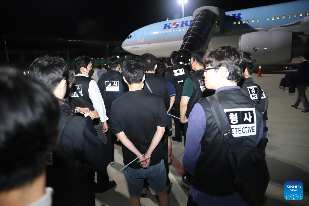 PHNOM PENH, Oct. 18 (Xinhua) -- Cambodia deported 64 South Korean online scam suspects, including five women, to their birth country on Friday night, said a news release from Cambodia's Ad-Hoc Committee to Combat Online Scams on Saturday.