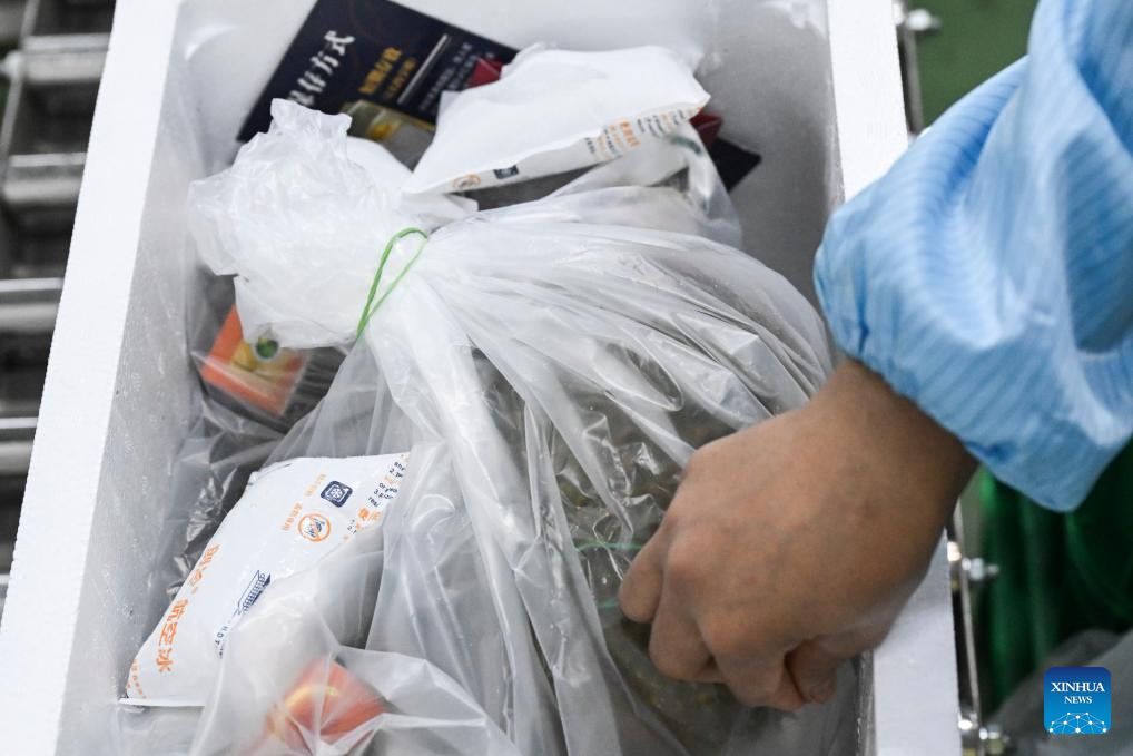 A staff member packs durians at a durian processing factory in Selangor state, Malaysia, Oct. 16, 2025. Raub in Pahang state, Malaysia is an important durian-producing region. Due to the unique tropical rainforest climate and soil conditions, premium durian varieties such as Musang King Durian from this area are known for their dense flesh and rich flavor.