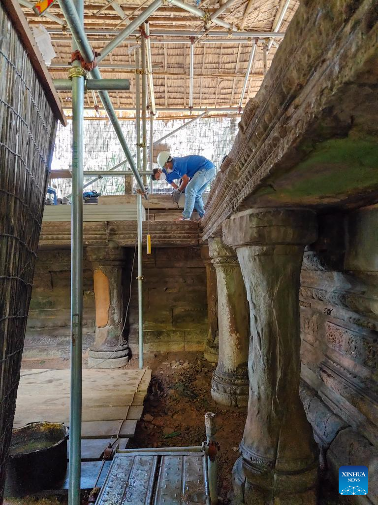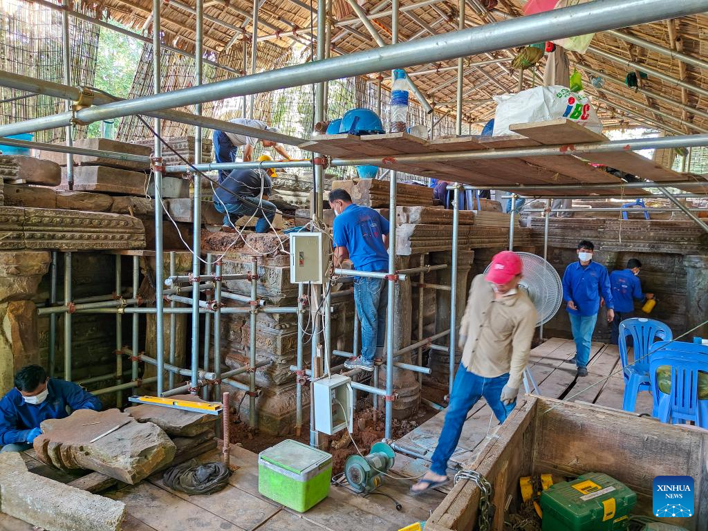 PHNOM PENH, Oct. 21 (Xinhua) -- Archaeologists have been restoring the ruined front terrace of the Banteay Samre Temple in Cambodia's Angkor Archaeological Park, the APSARA National Authority (ANA) said in a news release on Tuesday.