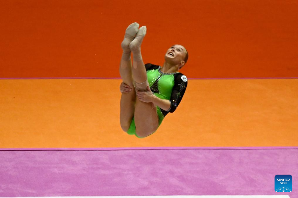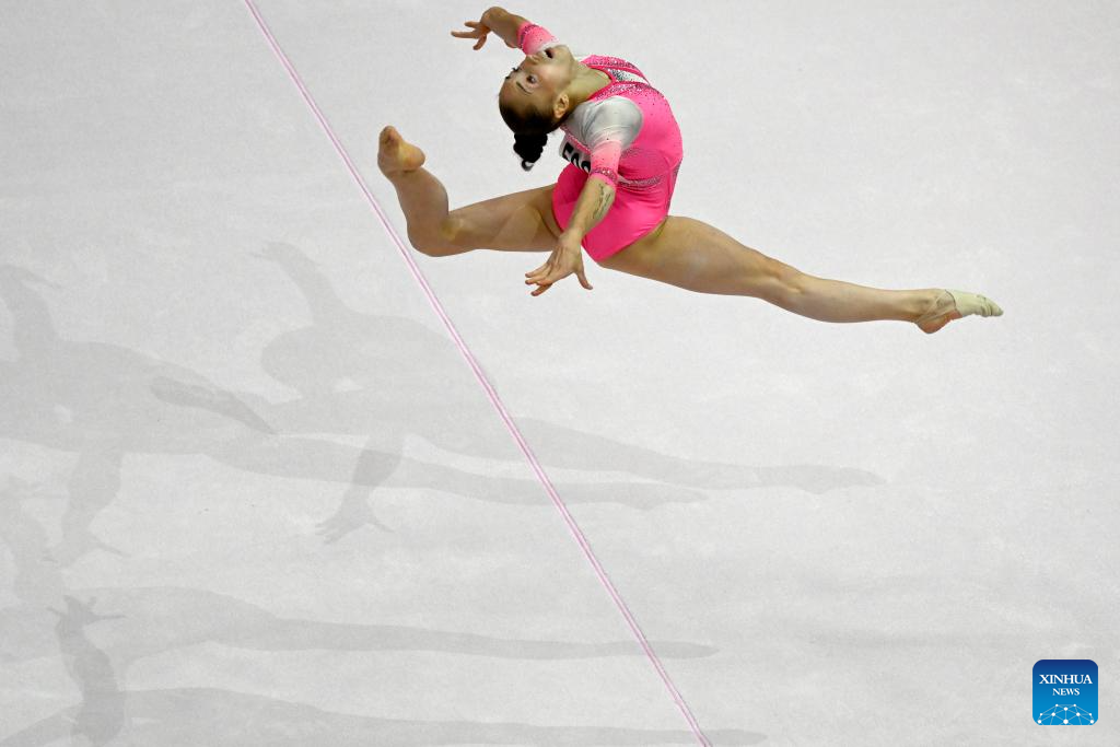 Angelina Melnikova of AIN (Individual Neutral Athlete) competes during the Floor Exercise of the Women's All-Round Final at the 53rd FIG Artistic Gymnastics World Championships in Jakarta, Indonesia, on Oct. 23, 2025. (Xinhua/Bai Xuefei)