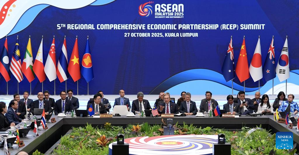 The fifth Regional Comprehensive Economic Partnership (RCEP) Leaders' Meeting is held in Kuala Lumpur, Malaysia, Oct. 27, 2025. (Xinhua/Xing Guangli)