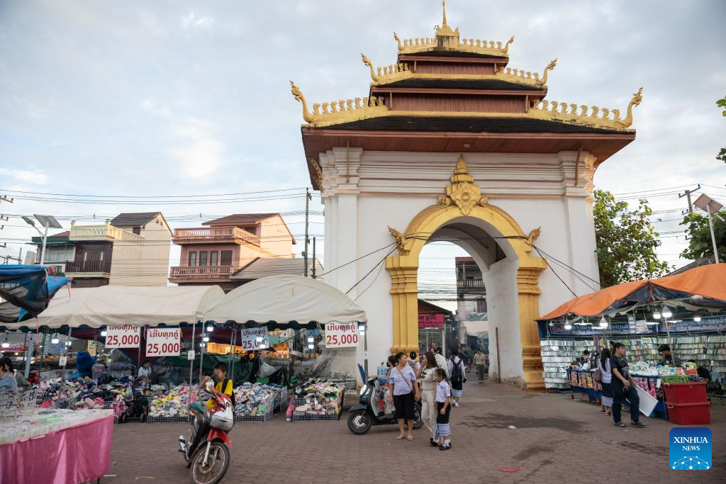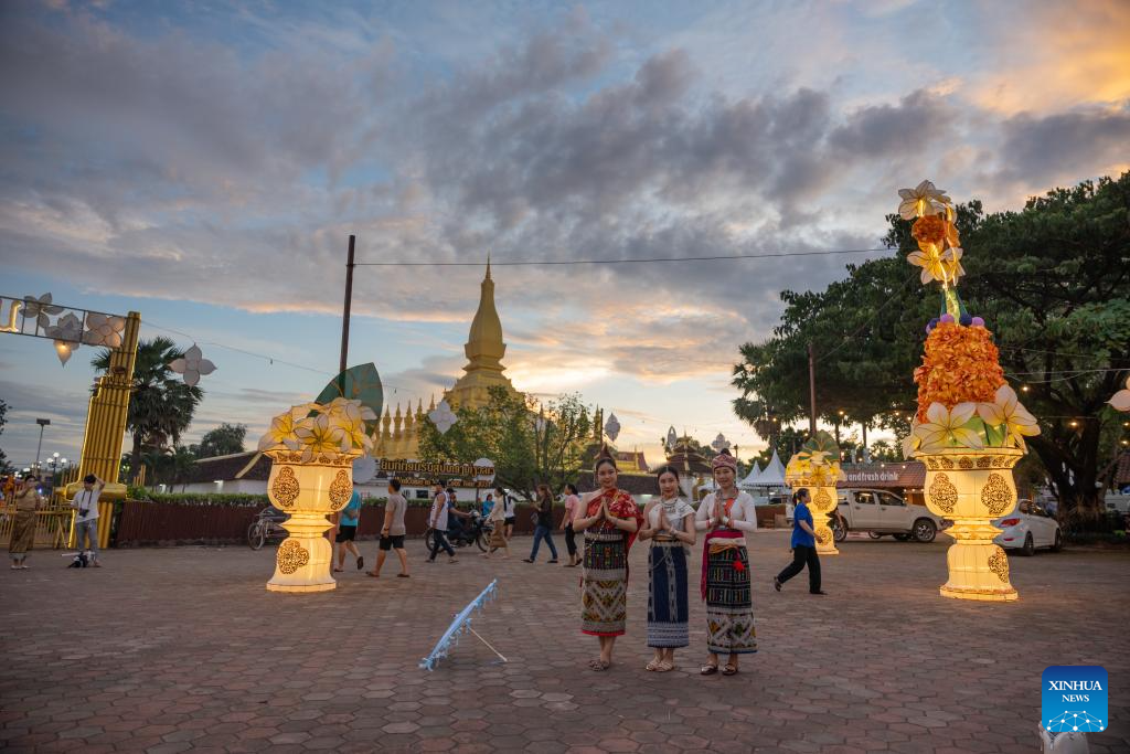VIENTIANE, Oct. 29 (Xinhua) -- The streets of the Lao capital Vientiane were buzzing with colorful booths, and the city was awakening in full swing to embrace the golden glow of the beloved That Luang festival.