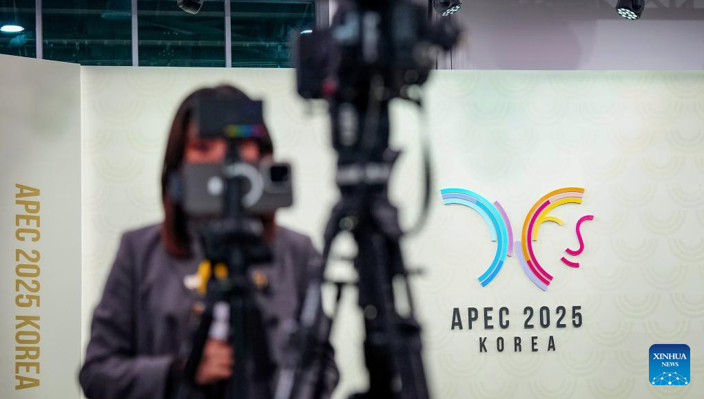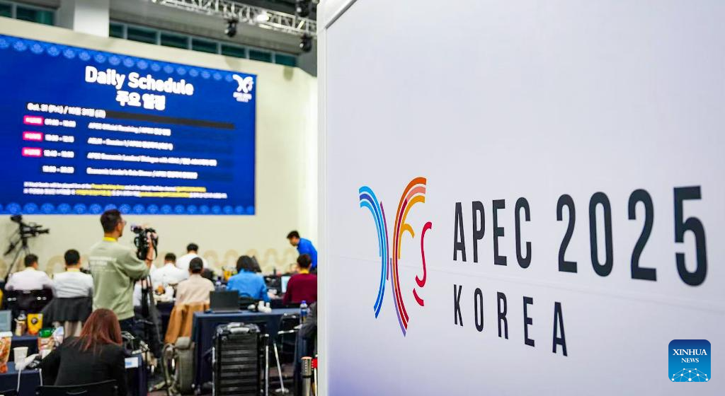 Journalists work at the media center in Gyeongju, South Korea, Oct. 31, 2025. The first session of the 32nd Asia-Pacific Economic Cooperation (APEC) Economic Leaders' Meeting kicked off in Gyeongju, South Korea, on Friday. (Xinhua/Jia Haocheng)