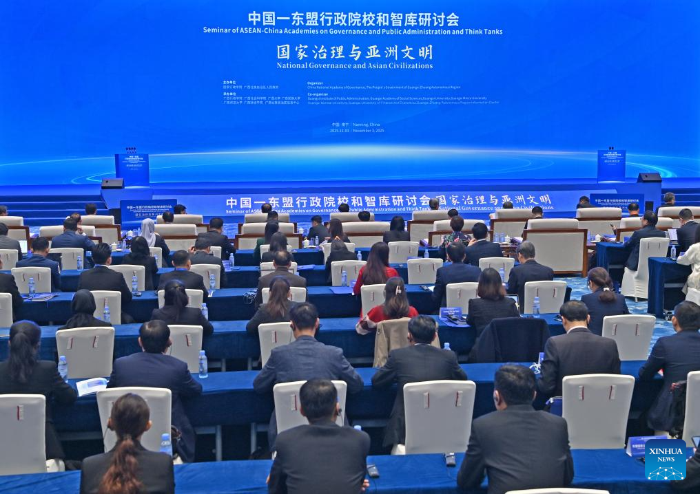 NANNING, Nov. 4 (Xinhua) -- The Seminar of ASEAN-China Academies on Governance and Public Administration and Think Tanks opened on Monday in Nanning, the capital of south China's Guangxi Zhuang Autonomous Region, focusing on state, regional and global governance, with participants from both sides discussing ways to strengthen cooperation and build consensus.