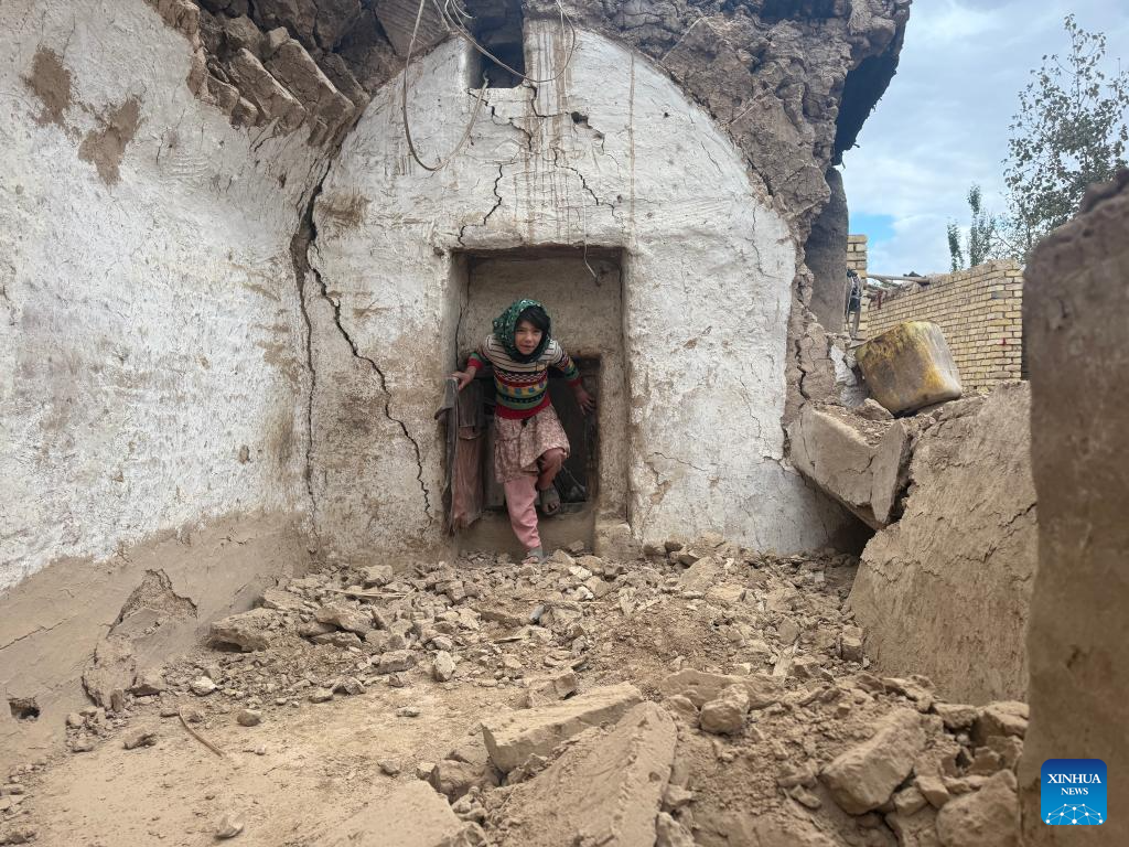 A child walks on the debris in Khulm area, Afghanistan, Nov. 4, 2025. An earthquake in northern Afghanistan has left 24 people dead and more than 630 injured, most of them with minor injuries, Afghanistan's National Disaster Management Authority said on Monday.
