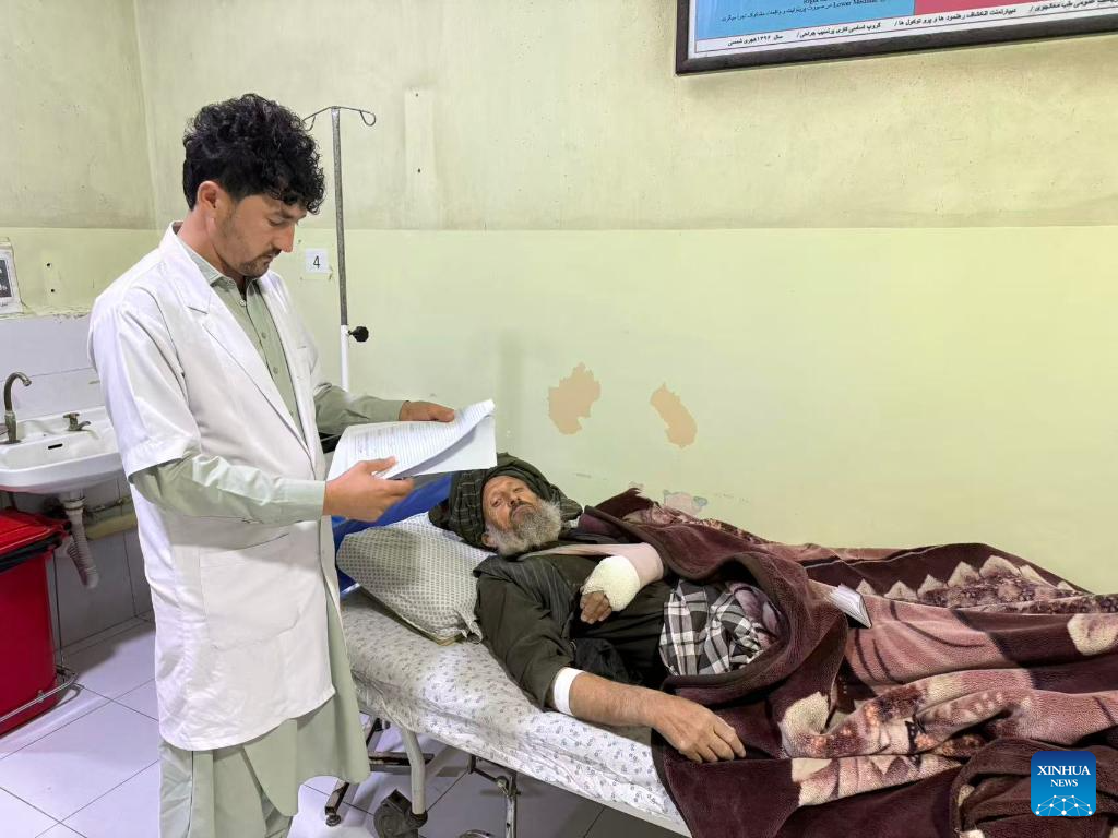 Photo taken on Nov. 3, 2025 shows injured people at a hospital in Aibak City, the capital of Samangan Province, Afghanistan. An earthquake in northern Afghanistan has left 24 people dead and more than 630 injured, most of them with minor injuries, Afghanistan's National Disaster Management Authority said on Monday. (Photo by Saifurahman Safi/Xinhua)