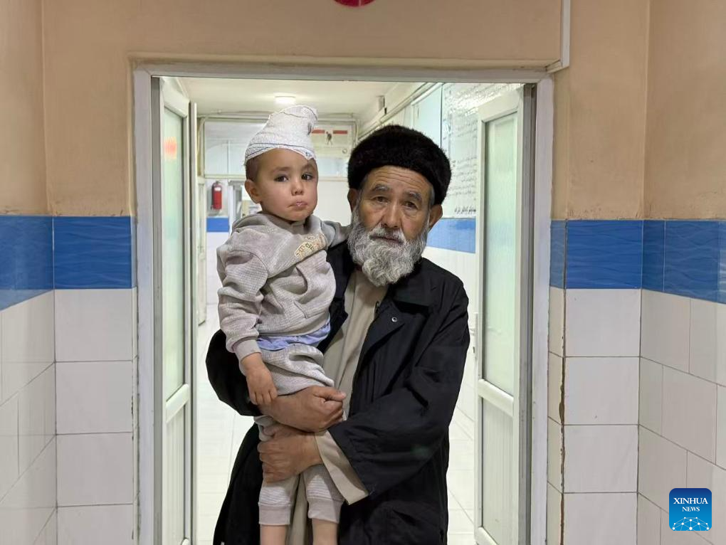 Photo taken on Nov. 3, 2025 shows a injured child at a hospital in Aibak City, the capital of Samangan Province, Afghanistan. An earthquake in northern Afghanistan has left 24 people dead and more than 630 injured, most of them with minor injuries, Afghanistan's National Disaster Management Authority said on Monday. (Photo by Saifurahman Safi/Xinhua)