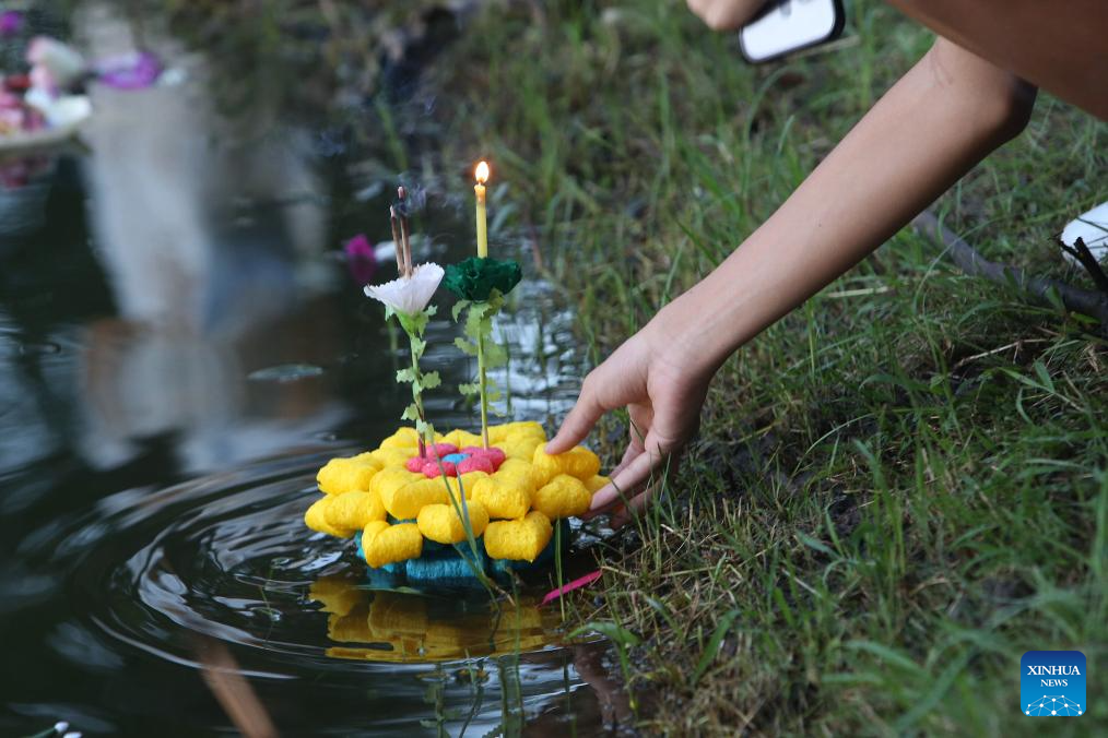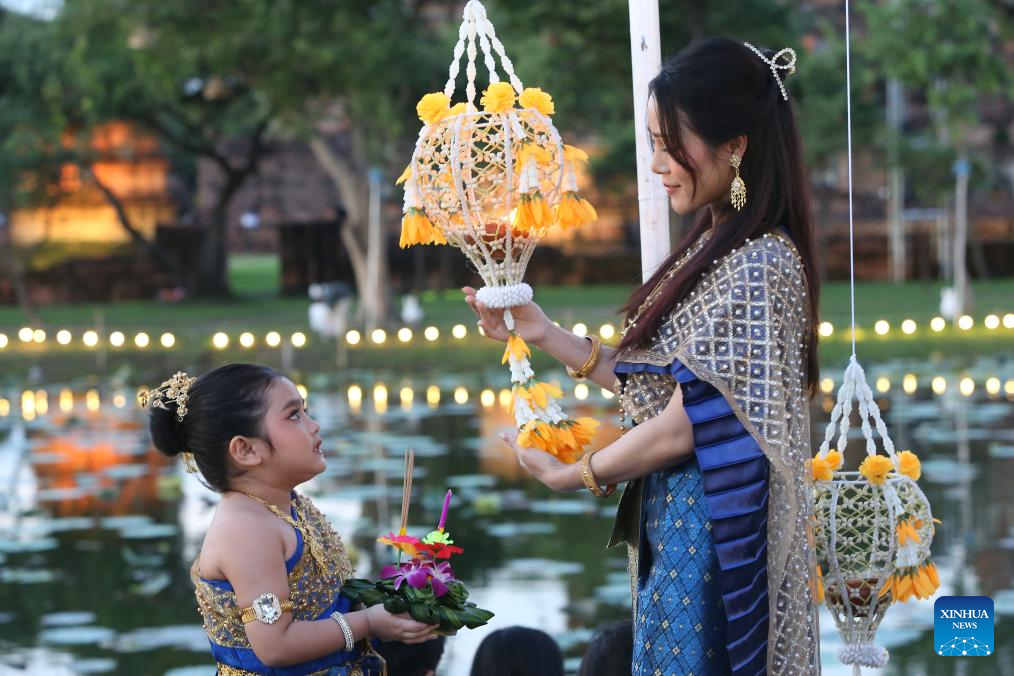 People attend the Loy Krathong Festival in Ayutthaya, Thailand, Nov. 5, 2025. Thailand celebrated the traditional Loy Krathong Festival on Wednesday. (Xinhua/Rachen Sageamsak)