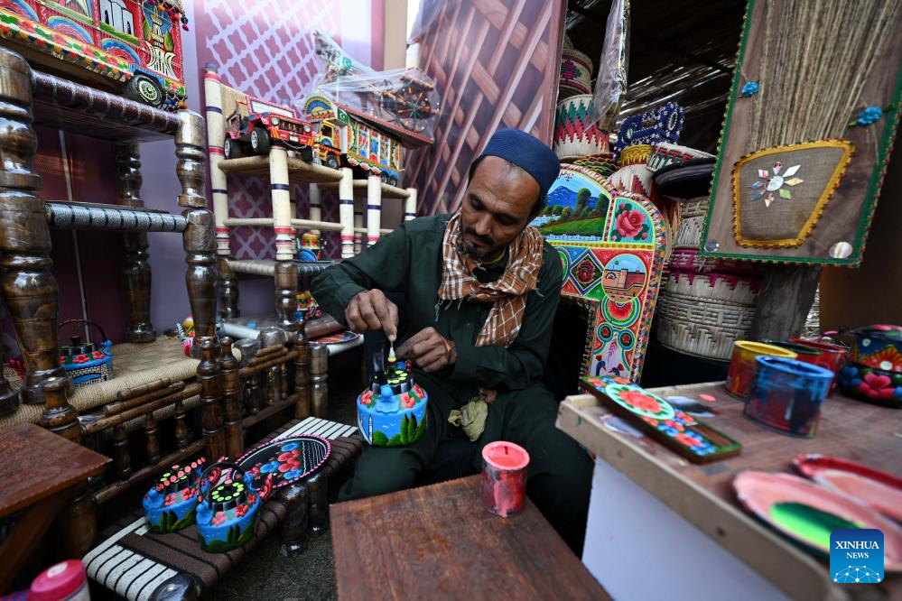 An artist decorates a tea-pot during the Lok Mela Festival in Islamabad, capital of Pakistan, Nov. 7, 2025. The annual ten-day folk festival kicked off here on Friday. (Photo by Ahmad Kamal/Xinhua)