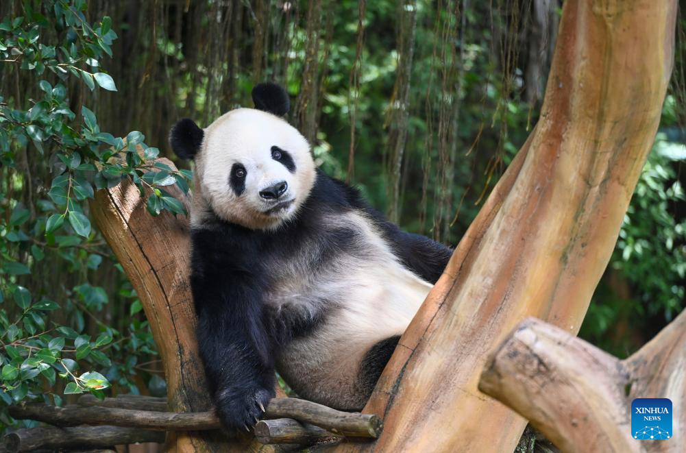 Giant panda Cai Tao is seen at the Panda Palace in Taman Safari Indonesia in Bogor, West Java province, Indonesia, Nov. 7, 2025. (Xinhua/Zulkarnain)