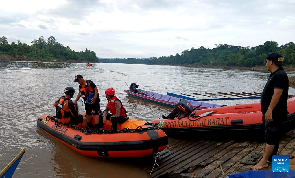 This photo provided by Indonesia's National Search And Rescue Agency (Basarnas) shows rescuers preparing for search operation after a ship sank in the Mahakam River in West Kutai regency, East Kalimantan province, Indonesia, on Nov. 12, 2025. Eight people were found dead after a ship sank in the Mahakam River in Indonesia's East Kalimantan province, head of the province's Search and Rescue Office Dody Setiawan said on Thursday. (Basarnas/Handout via Xinhua)