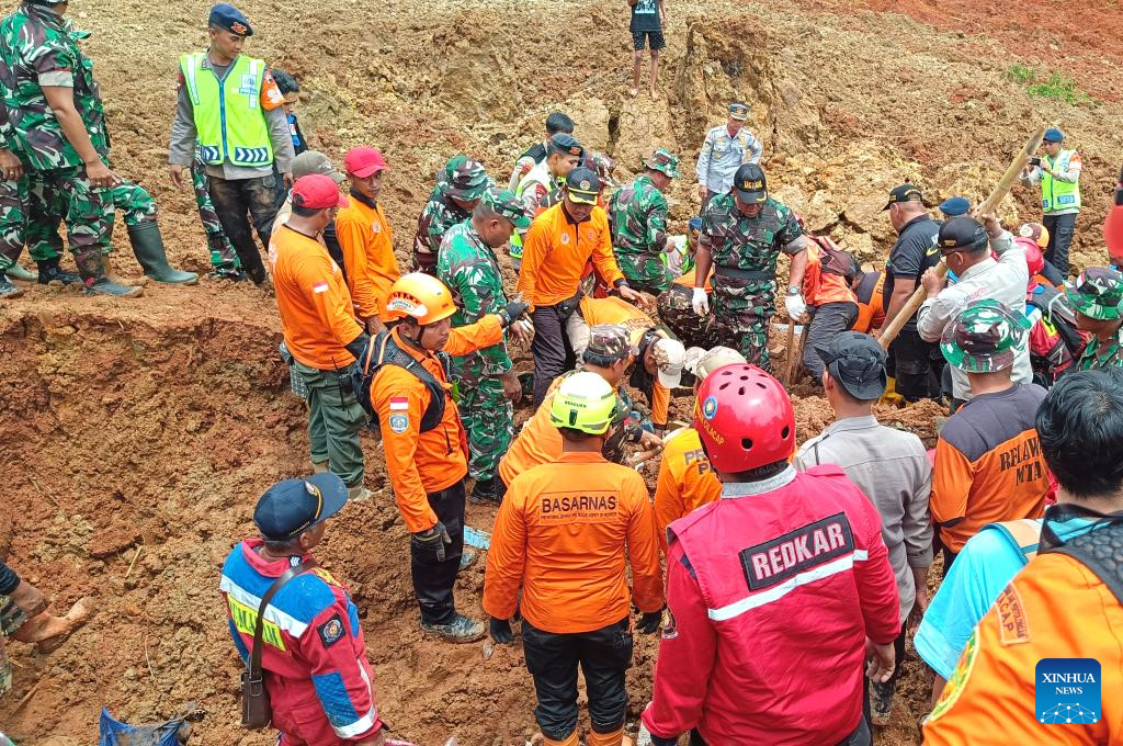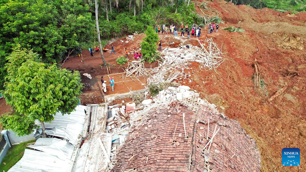 Heavy rains triggered landslides in Cibuyut and Tarukahan hamlets of Cibeunying Village in Cilacap Regency, according to Muhamad Chomsul, head of the Emergency Unit of the provincial Disaster Management and Mitigation Agency. (BNPB/Handout via Xinhua)