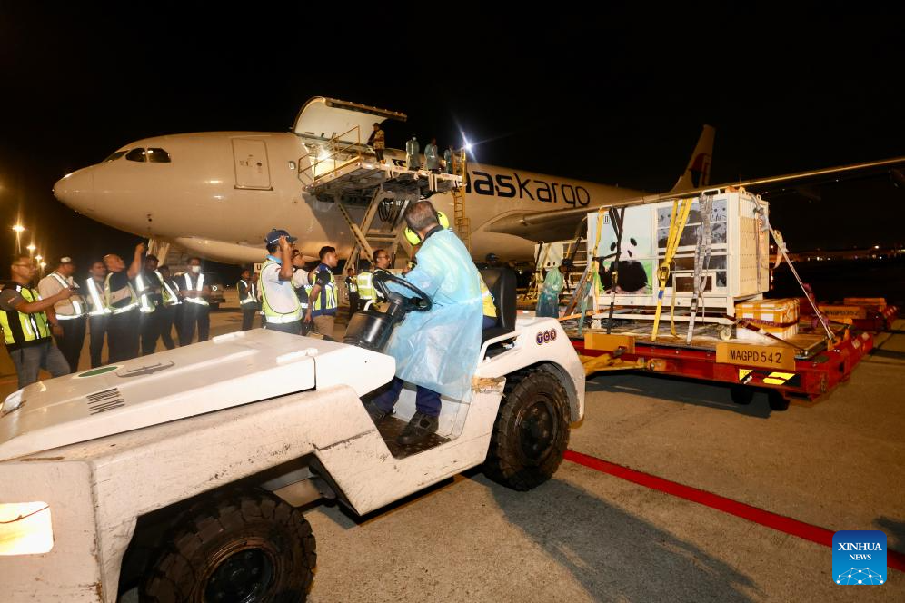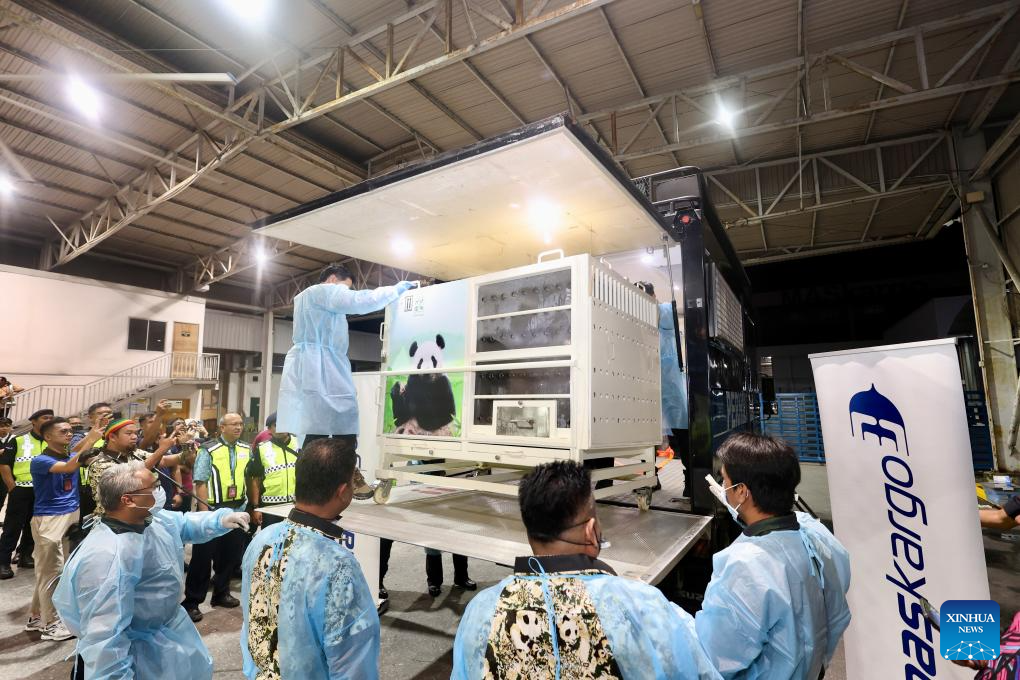 KUALA LUMPUR, Nov. 18 (Xinhua) -- Malaysia welcomed the arrival of a new pair of giant pandas, "Chen Xing" and "Xiao Yue," with the pair touching down at Kuala Lumpur International Airport on Tuesday.