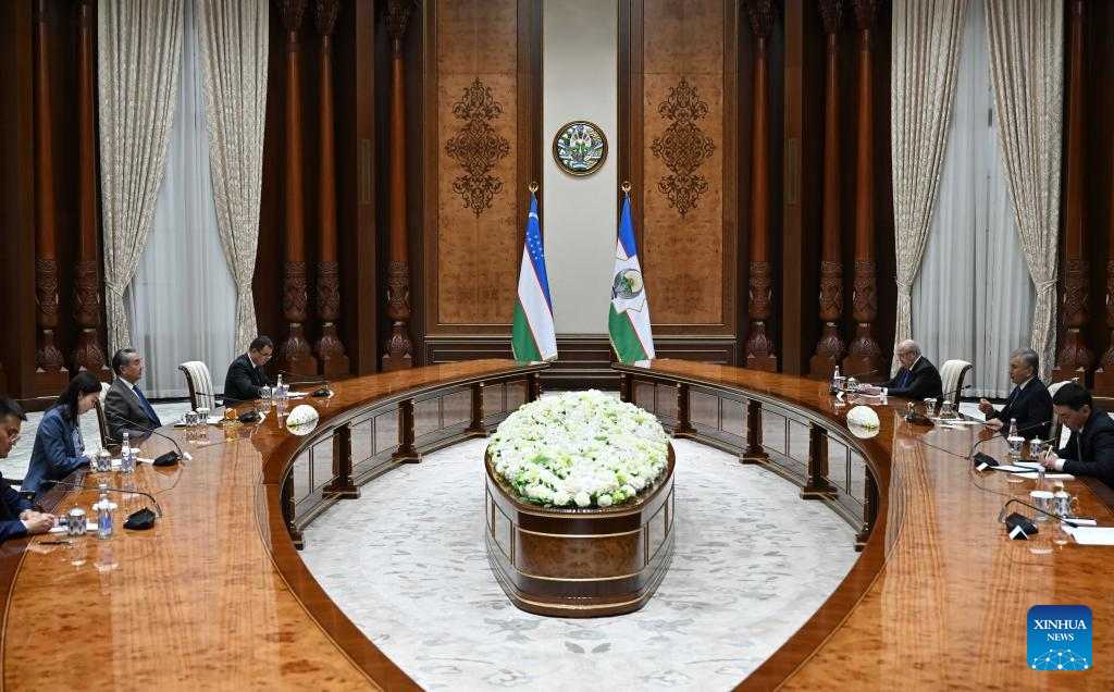 Uzbek President Shavkat Mirziyoyev meets with visiting Chinese Foreign Minister Wang Yi, also a member of the Political Bureau of the Communist Party of China (CPC) Central Committee, in Tashkent, Uzbekistan, Nov. 21, 2025. (Xinhua/Li Renzi)