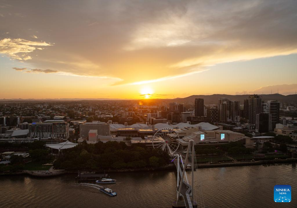 This photo taken on Nov. 23, 2025 shows a sunset view from Sky Deck in Brisbane, Queensland, Australia. (Xinhua/Ma Ping)
