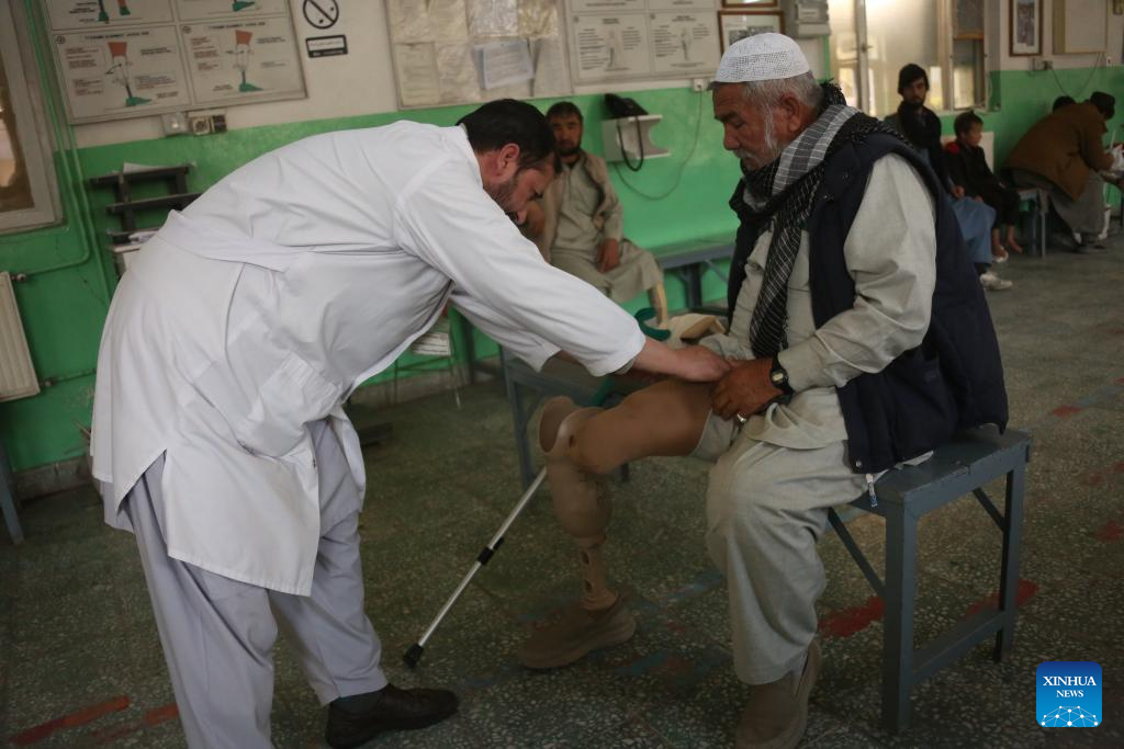 "I became disabled 28 years ago. I lost my left leg in a landmine explosion when I was six years old," Sakhiyar told Xinhua inside the hospital.