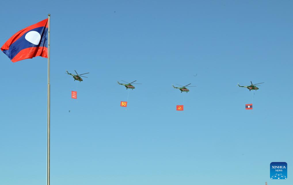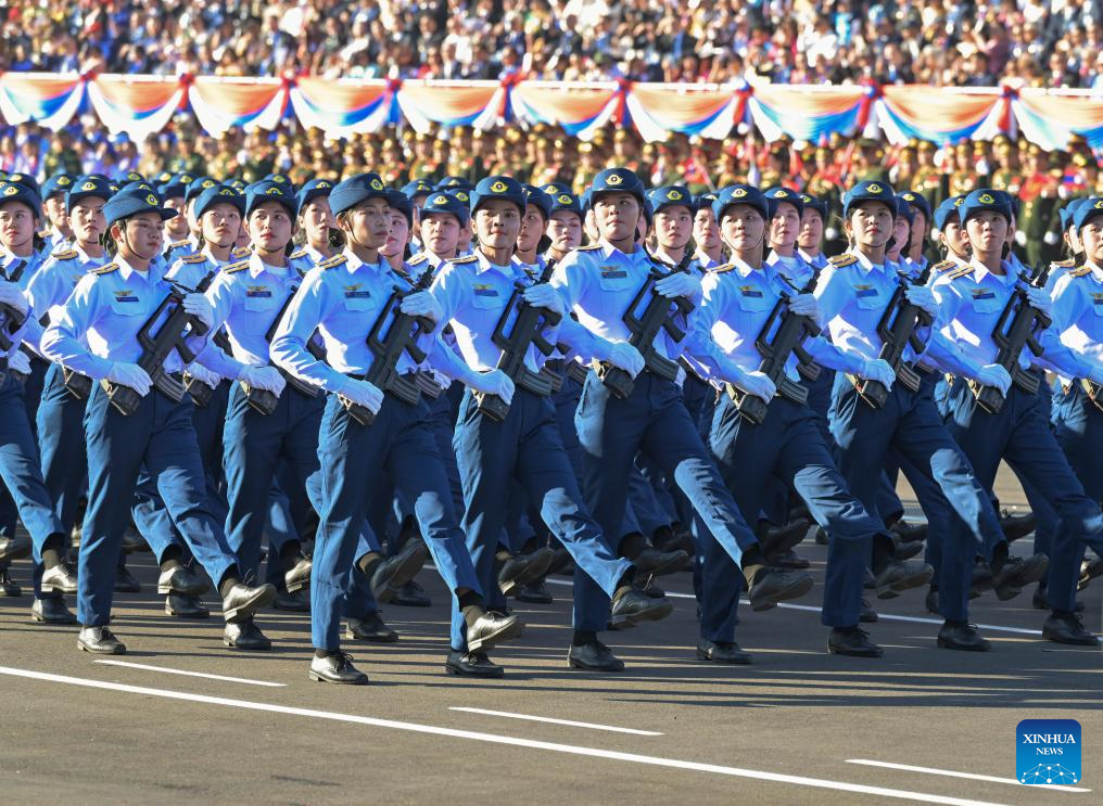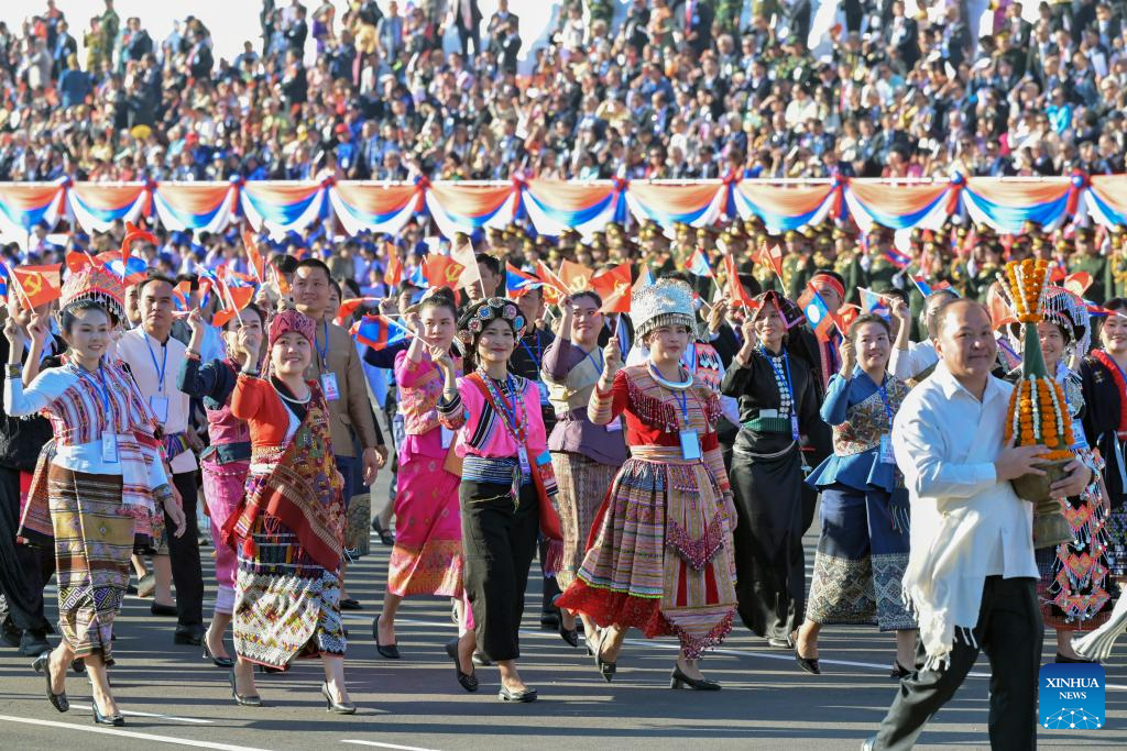 This photo taken on Dec. 2, 2025 shows a scene during an event in Vientiane to celebrate the 50th anniversary of the founding of the Lao People's Democratic Republic. A grand mass march and a military parade were held in Vientiane on Tuesday. (Xinhua/Gao Jie)