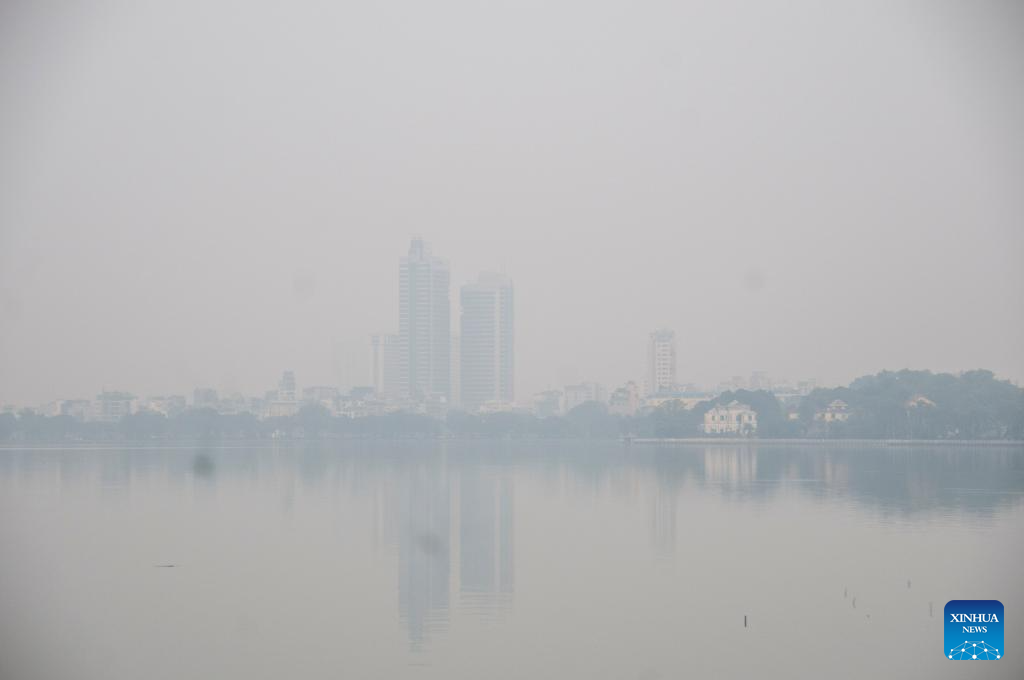 Buildings across the West Lake are barely visible due to heavy air pollution in Hanoi, Vietnam, Dec. 4, 2025. (Photo by Vu Trung Kien/Xinhua)