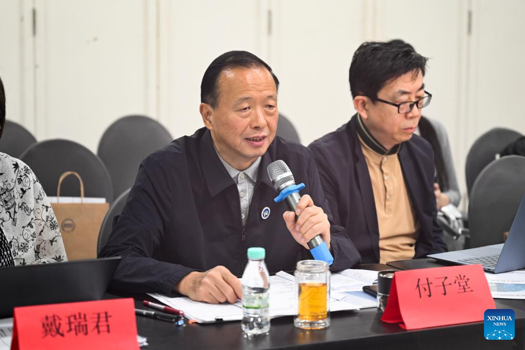 Fu Zitang (L), vice president of the China Society for Human Rights Studies and professor of Law at Southwest University of Political Science and Law, speaks during the International Symposium on Human Rights Protection in the Digital Era in Selangor state, Malaysia, Dec. 5, 2025. The symposium was held here on Friday, bringing together scholars, social organizations and media from both China and Malaysia. (Xinhua/Cheng Yiheng)