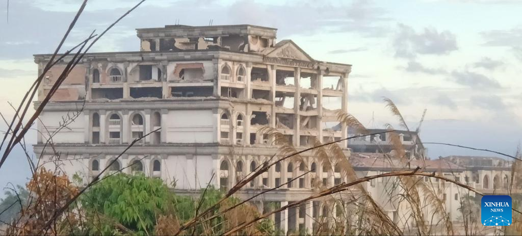 A civilian building damaged in airstrikes by Thai military forces is seen in Pursat province, Cambodia, Dec. 13, 2025. The Thai military forces on Saturday morning used two F-16 fighter jets to drop bombs at some locations in Cambodia's Pursat province, the Cambodian defense ministry said in a press release. (Cambodian Defense Ministry/Handout via Xinhua)