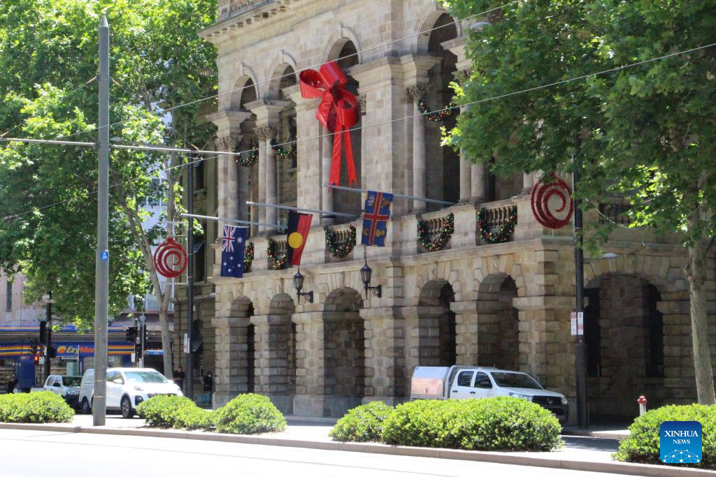 Flags fly at half-mast at the Victoria Square in Adelaide, Australia, Dec. 15, 2025.