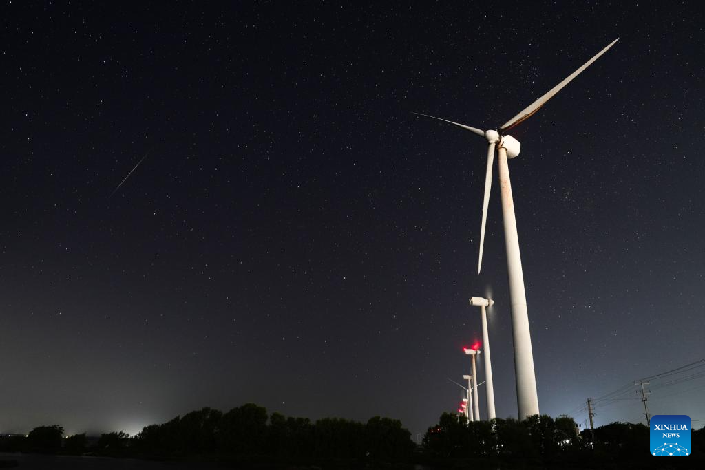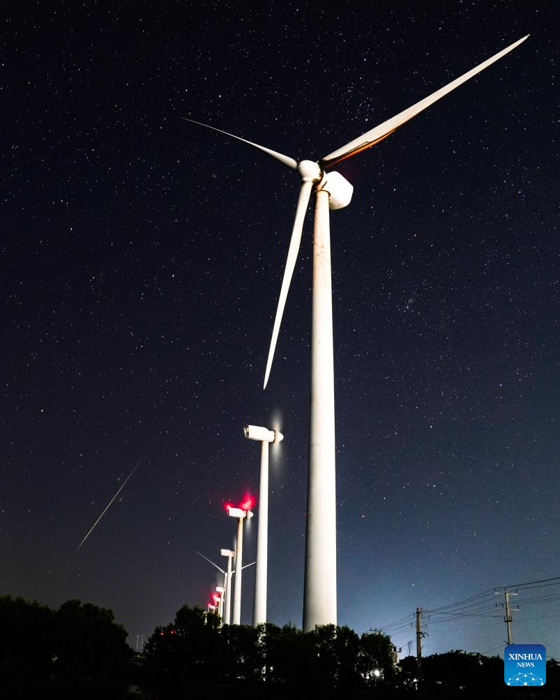 This photo taken on Dec. 15, 2025 shows the Geminid meteor shower in the sky over Puttalam, Sri Lanka. (Photo by Thilina Kaluthotage/Xinhua)