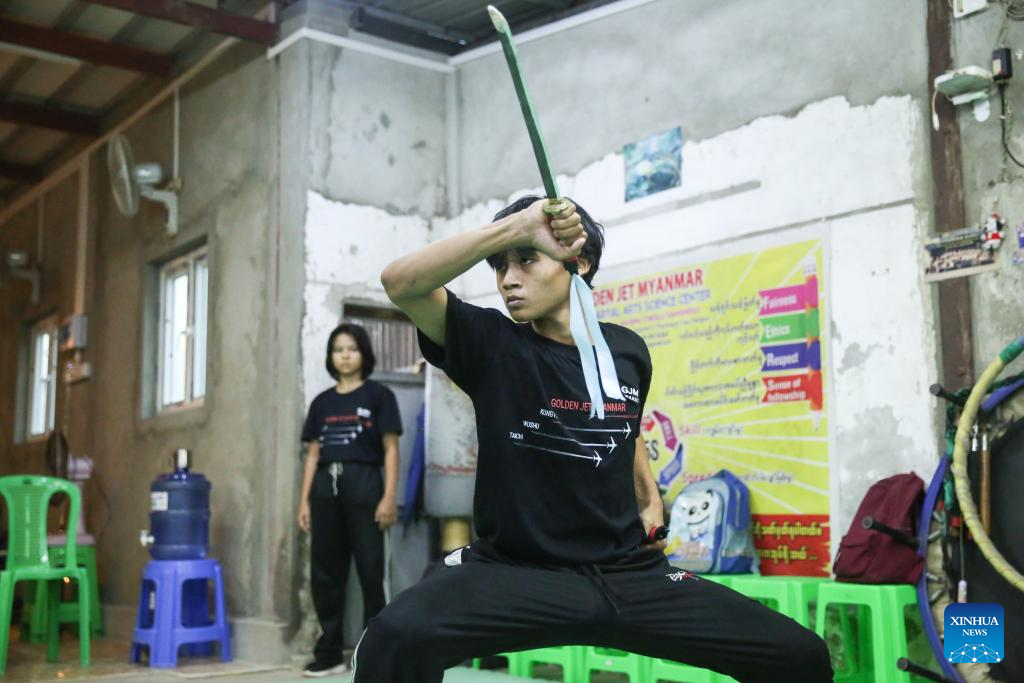 A student practices Chinese martial arts at Golden Jet Myanmar, a Chinese martial arts center in Yangon, Myanmar, Dec. 26, 2025. (Xinhua/Myo Kyaw Soe)