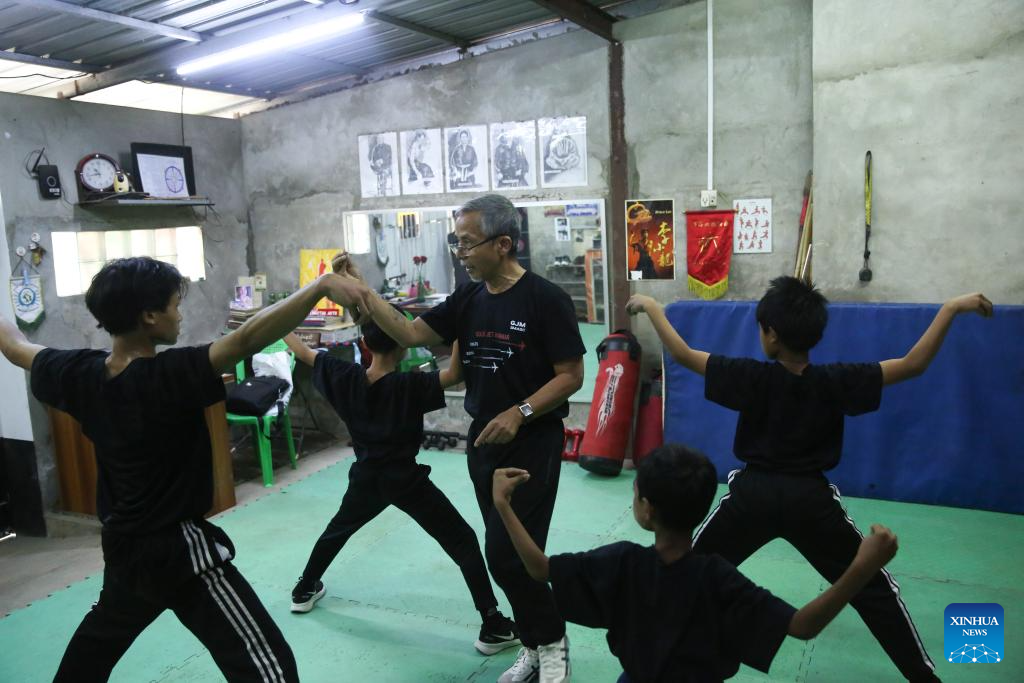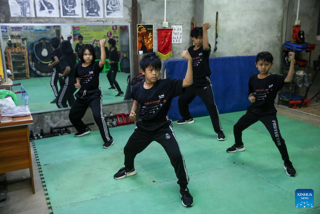 YANGON, Dec. 26 (Xinhua) -- With bare feet striking the foam floor in a steady rhythm, children roll, kick, and regain their balance with focused expressions far beyond their years inside a modest training hall in Myanmar. Here, Kung Fu is not just a physical exercise; it is a lesson in discipline, confidence, and perseverance.