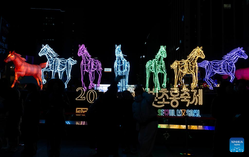 People enjoy a New Year light show in Seoul, South Korea on Dec. 31, 2025. (Photo by Jun Hyosang/Xinhua)