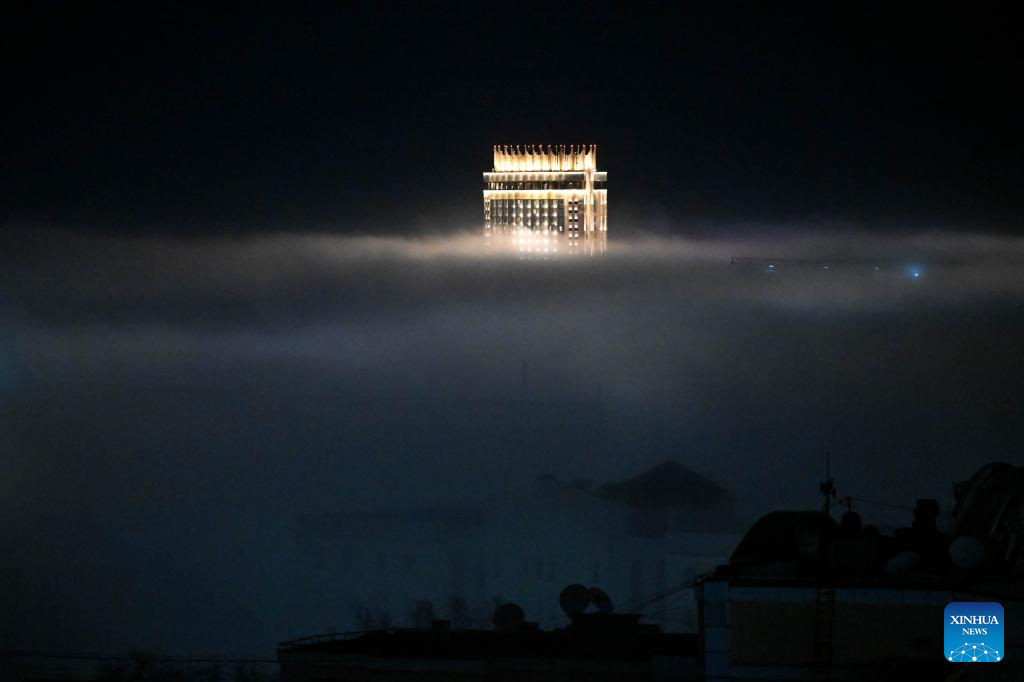 This photo taken on Jan. 3, 2026 shows Almaty in fog, Kazakhstan. (Xinhua/Li Renzi)