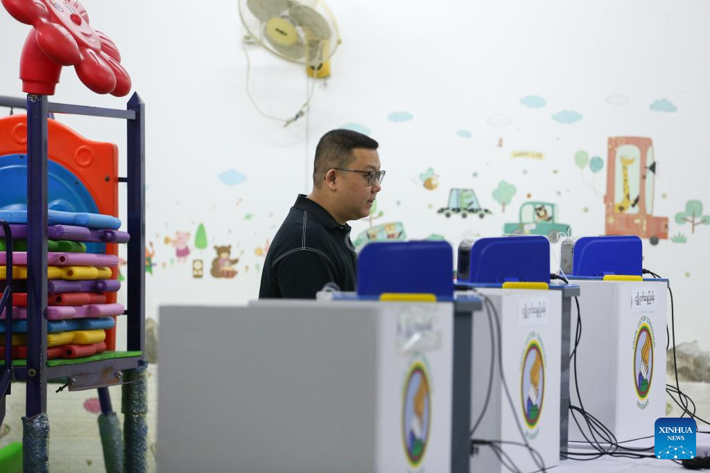 People vote at a polling station during the second phase of the general election in Yangon, Myanmar, Jan. 11, 2026. Myanmar kicked off the second phase of its multi-party democratic general election on Sunday morning, with polling stations opening across 100 townships. (Xinhua/Myo Kyaw Soe)