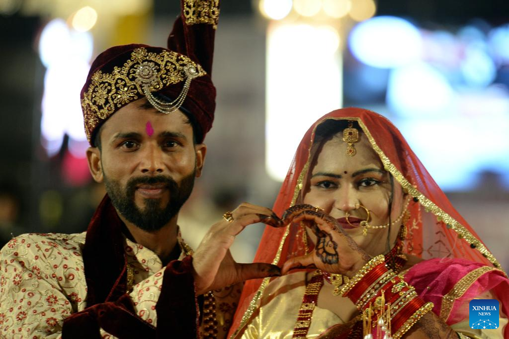 A couple poses for a photo during a mass wedding ceremony in Karachi, Pakistan, Jan. 11, 2026. (Str/Xinhua)